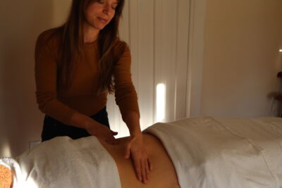 Hara (abdominal) diagnosis uses light palpation to identify areas of tension or diminished flow, which then guides acupuncture point selection—typically placed on the limbs to create movement through the channel pathways. While the needles are in, slow, deliberate bodywork through the abdomen and pelvis helps release held tissue, support healthy circulation, and encourage deeper systemic settling. This approach supports menstrual concerns, fertility, postpartum and pregnancy-loss recovery, pelvic pain or tension, digestive imbalances, and nervous system regulation. Her work is rooted in ongoing mentorship and complemented by training in tui na and somatic-informed bodywork.